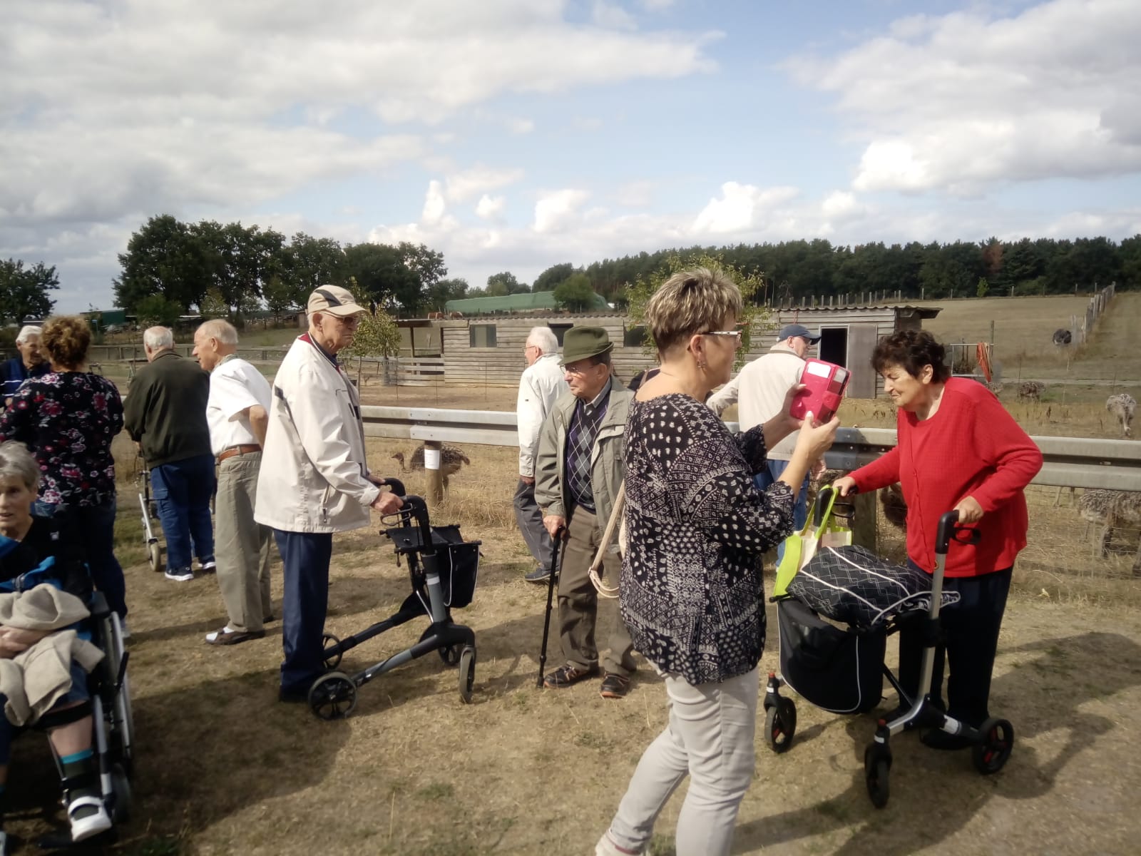 Am 14.09.2018 unternahmen die Tagesgäste und Mitarbeiter einen Ausflug zur Straußenfarm nach Neulöwenberg. Bei schönstem Wetter ging es gesellig im Kremserwagen, gezogen von zwei Pferdestärken, durch Feld und Wald. Nach einem deftigen Mittagessen im hauseigenen Restaurant, konnten sich unsere Tagesgäste die Strauße in ihren Gehegen anschauen. Bei einer Tasse Kaffee und einem Stück Kuchen ließen wir den schönen Tag ausklingen.